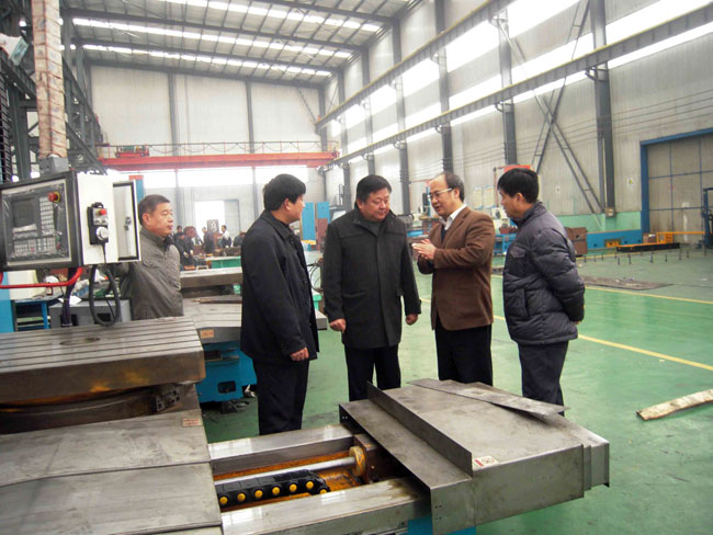 12月5日,西安交通大学机械工程学院副院长、博士生导师赵升吨教授莅临我集团考察指导工作。图为董事长总经理康凤明、常务副总经理潘宪平等领导陪同赵教授参观镗铣床项目生产现场。