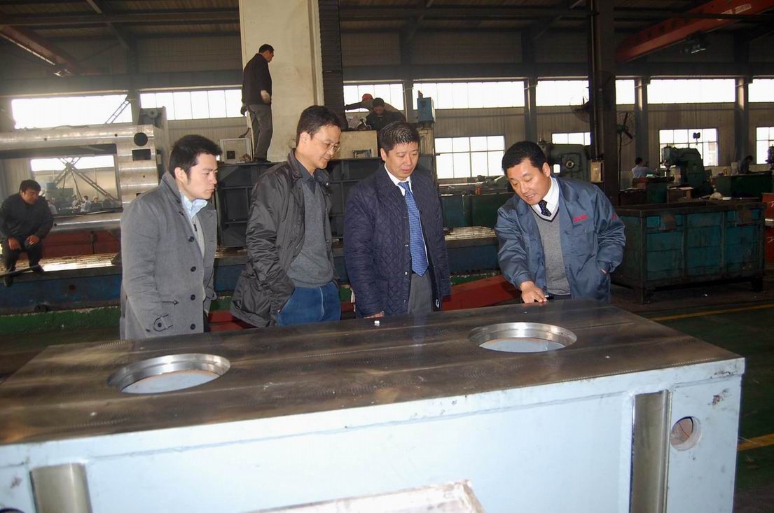 11月29日,日本岗谷钢铁有限公司负责人来公司考察订购生产线项目。图为公司副总经理朱洪军陪同客商考察生产现场。